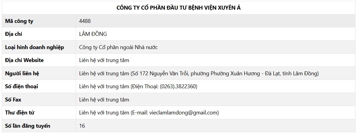 Tuyển dụng Thư ngỏ tuyển dụng – Bưu điện tỉnh Đắk Nông  16:29 18/09/2025 |   25 Công ty cổ phần đầu tư Bệnh viện Xuyên Á  14:35 20/07/2025 |   28 Tuyển dụng viên chức vào làm việc tại Trung tâm lưu trữ lịch sử trực thuộc Sở Nội vụ tỉnh Lâm Đồng năm 2024  14:20 24/11/2024 |   29
