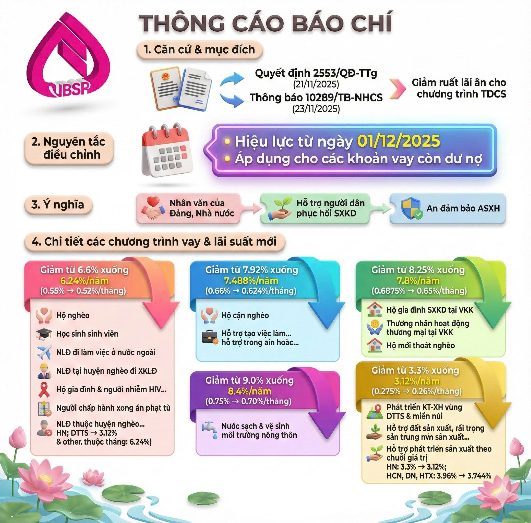 Việc giảm lãi suất cho vay theo Quyết định 2553/QĐ-TTg là bước đi quan trọng, kịp thời và thiết thực của Chính phủ nhằm hỗ trợ người dân vượt qua khó khăn, phục hồi kinh tế – xã hội sau đại dịch và các biến động kinh tế toàn cầu.